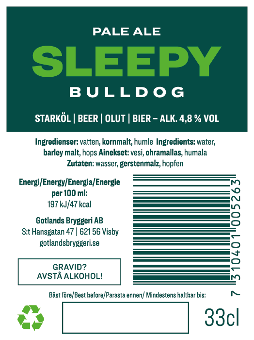 Sleepy Bulldog har tydlig inspiration från engelsk pubkultur men med ett stänk modern amerikansk humle som gör den piggare än sina brittiska föregångare. Doften domineras av mogen grapefrukt och rostat bröd.